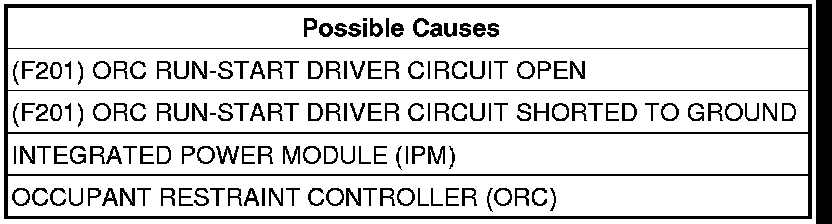 - Repair the (F201) ORC Run-Start Driver circuit for a short to ground.