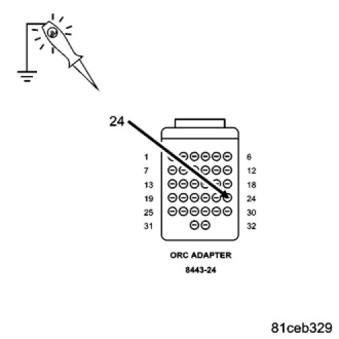 Using a 12 - volt test light connected to ground, check the (F100) ORC Run Driver circuit cavity 24 of the ORC 8443-24 Adapter.