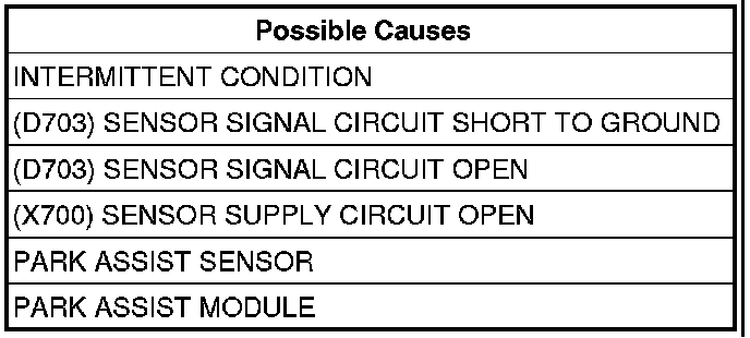 - Repair the (D703) Park Assist Sensor signal circuit for an open.