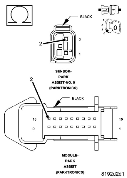 NOTE: The numbering system for the park assist sensors allows for up to ten sensors on the vehicle, six front and four rear. The sensors are numbered in a clockwise manner starting at the left front bumper. The left front sensor (if equipped with front park assist) is the number 1 sensor. The numbering continues in a clockwise direction around the vehicle, so the left rear sensor is the number 10 sensor.