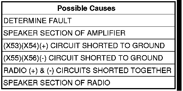- Repair the radio (X56) right or (X55) left (-) circuit for a short to ground.