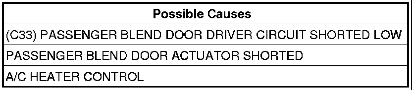 2. (C33) PASSENGER BLEND DOOR DRIVER CIRCUIT SHORTED LOW