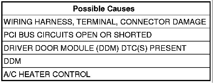If the A/C Heater Control fails to receive the Left Front Door Ajar status message from the Driver Door Module (DDM) for more than 10 seconds.