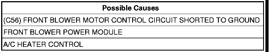 - Repair the (C56) Front Blower Motor Control circuit for a short to ground.
