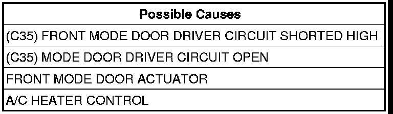 - Repair the (C35) Front Mode Door Driver circuit for an open.