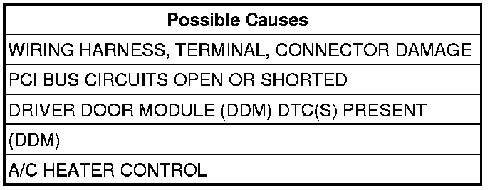 If the A/C Heater Control fails to receive any messages from the Driver Door Module (DDM) for more than 5 seconds.