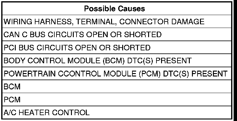 If the A/C Heater Control fails to receive the VIN message from the Powertrain Control Module (PCM) for more than 10 seconds.