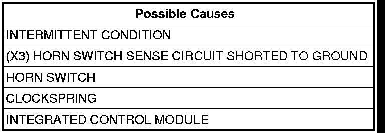 - Repair the (X3) Horn Switch Sense circuit for a short to ground.