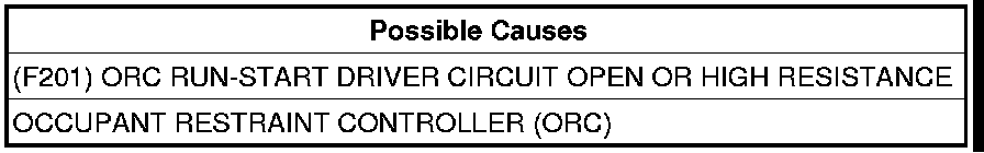 - Repair the open or high resistance in the (F201) ORC Run-Start Driver circuit.
