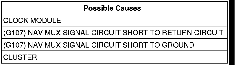 - Repair the (G107) NAV MUX Signal circuit for a short to ground.