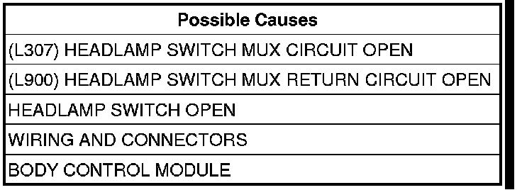 - Repair the (L307) Headlamp Switch MUX circuit for an open.