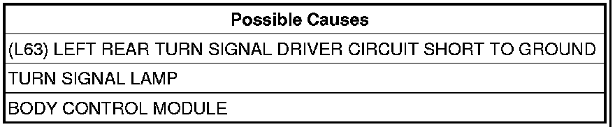 - Repair the (L63) Left Rear Turn Signal Driver circuit for a short to ground.