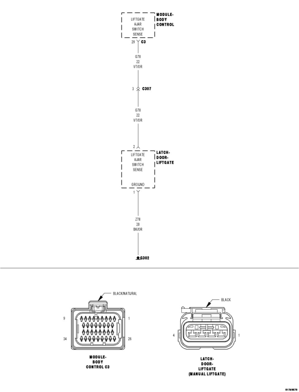 2. (G78) LIFTGATE AJAR SWITCH SENSE CIRCUIT SHORT TO GROUND