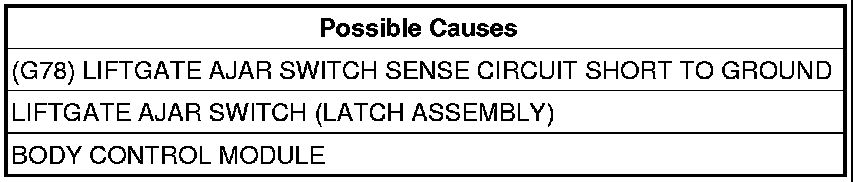 - Repair the (G78) Liftgate Ajar Switch Sense circuit for a short to ground.