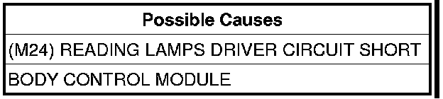 - Repair the (M24) Reading Lamps Driver Circuit for a short condition.