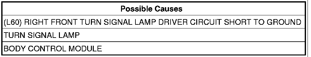 2. (L60) RIGHT FRONT TURN SIGNAL DRIVER CIRCUIT SHORT TO GROUND