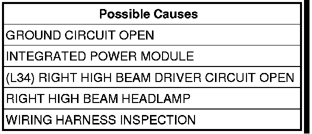 - Repair the (L34) Right High Beam Driver circuit for an open.