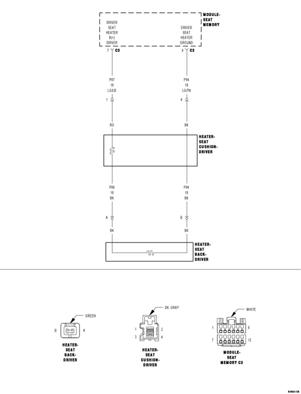 - Repair the open (P87) Driver Seat Heater B(+) Driver wire.