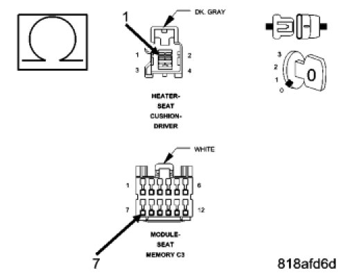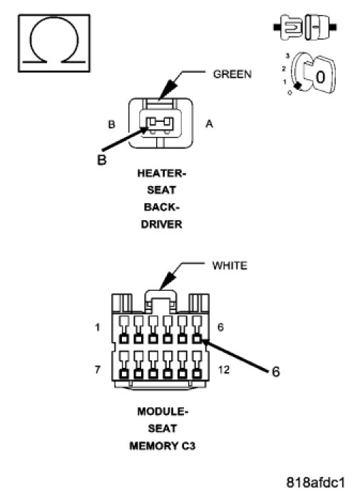 - Using the wiring schematic as a guide, inspect the wiring and connectors for an intermittent condition. Check for an intermittent open cushion or seat back element by applying pressure to seat with the heater on and watch the scan tool for the DTC to reset.