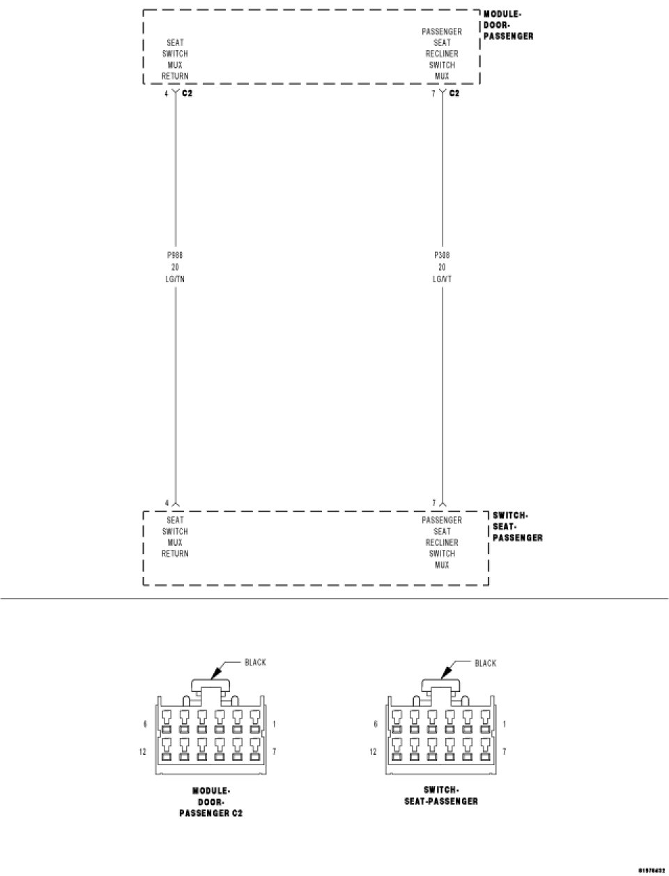- Repair the (P308) Passenger Seat Recliner Switch MUX circuit for a short to ground.