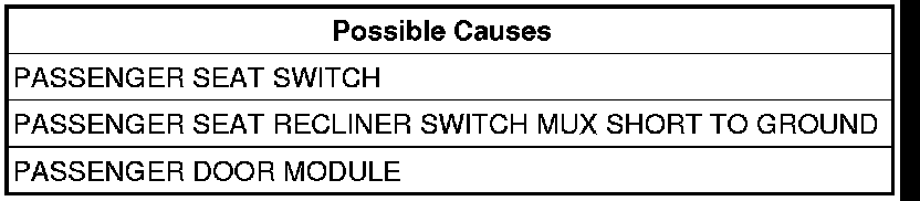 3. (P308) PASSENGER SEAT RECLINER SWITCH MUX CIRCUIT SHORT TO GROUND.