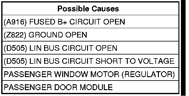 Disconnect the Passenger Door Module C1 connector.