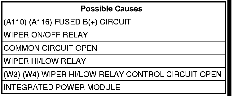 - Repair the applicable Wiper Hi/Low Relay Control circuit for an open.