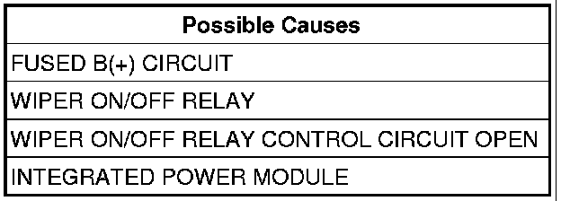 - Repair the Wiper On/Off Relay Control circuit for an open.