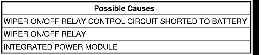 - Repair the Wiper On/Off Relay Control circuit for a short to battery.