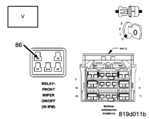 FRONT WIPER ON/OFF RELAY SHORT TO BATTERY-IPM