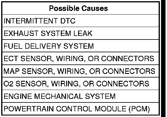 The PCM monitors the Adaptive Memory factor (a combination of Short Term Adaptive and Long Term Adaptive). If the total fuel addition exceeds a calibrated threshold for an extended period, a fuel system lean fault is stored. If the total fuel subtraction exceeds a calibrated threshold, a fuel system rich fault is stored. Two Trip Fault. Three good trips to turn off the MIL