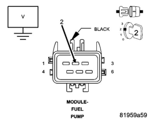 Using a 12 volt test light connected to 12 volts, check the (Z201) Ground circuit in the Fuel Tank Module harness connector.