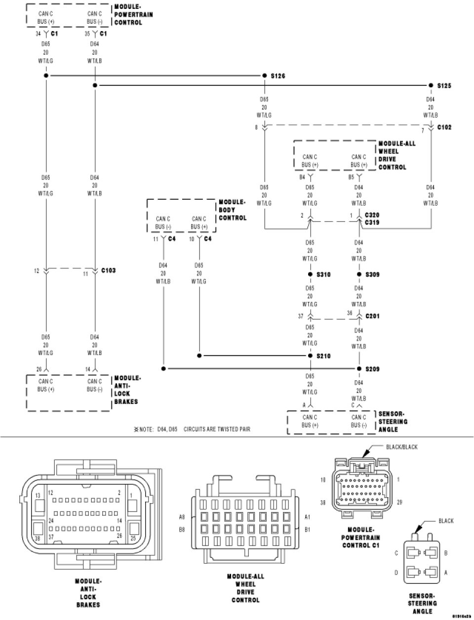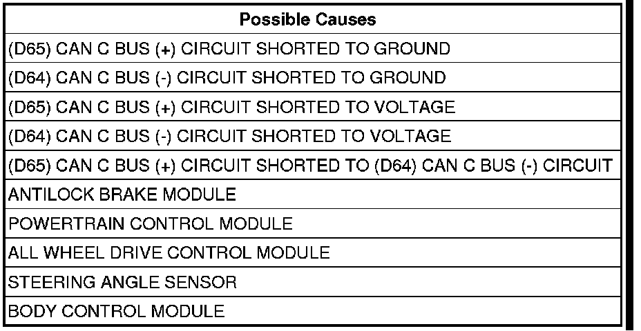 - Repair the (D64) CAN C Bus (-) circuit for a short to ground.