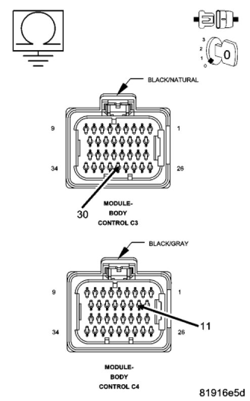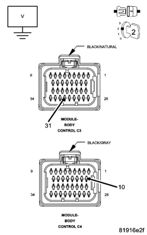 Disconnect the Body Control Module C3 and C4 harness connectors.