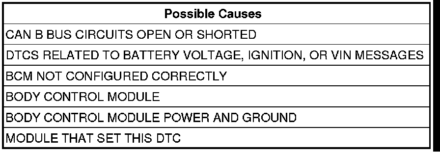 NOTE: Check for BCM configuration, CAN B or C hardware electrical, VIN Missing/Mismatch, battery or ignition related DTCs.