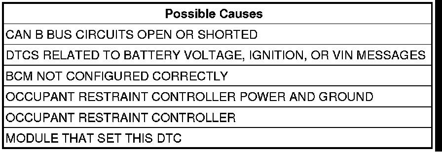 Bus messages not received from the Occupant Restraint Controller for approximately 2 to 5 seconds.