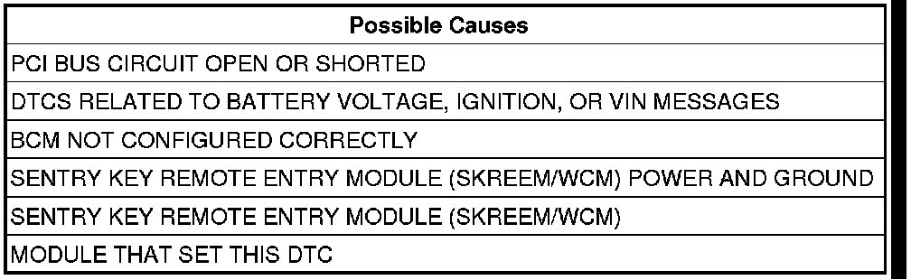 NOTE: Check for BCM configuration, PCI or CAN C hardware electrical, VIN Missing/Mismatch, battery or ignition related DTCs.