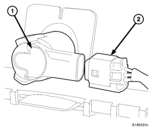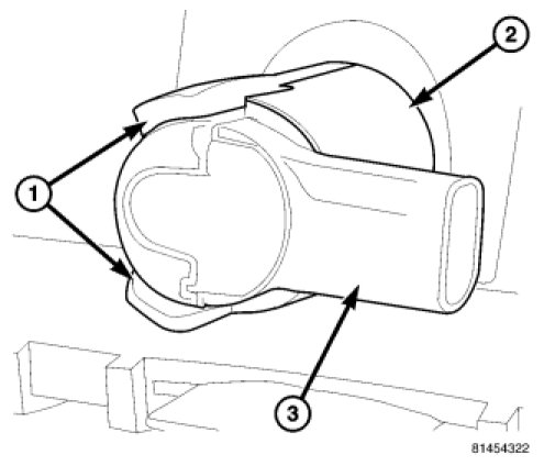 1. Position the Park Assist Sensor (3) over the retaining bezel (2) and firmly snap into place.