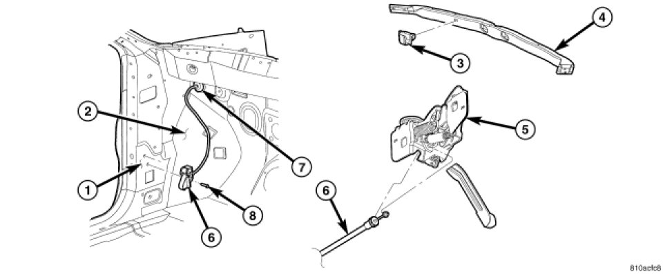 6. Connect remote hood release cable to hood latch.