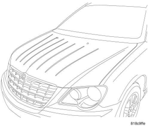 1. Place hood in position on vehicle. With assistance from a helper at the opposite side of the vehicle to support the hood, install bottom bolts to hold hood to hinge finger tight.