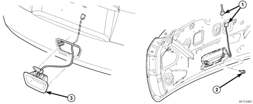 1. Route the exterior handle electrical connector through the door and position handle.