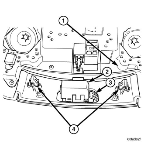 2. Separate the overhead console from the headliner, by carefully pulling down on the front portion, toward the windshield, to release the retaining clips.