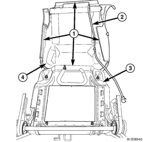 9. Place seat foam/cover in position and work the foam and cover under recliner torque rod.
