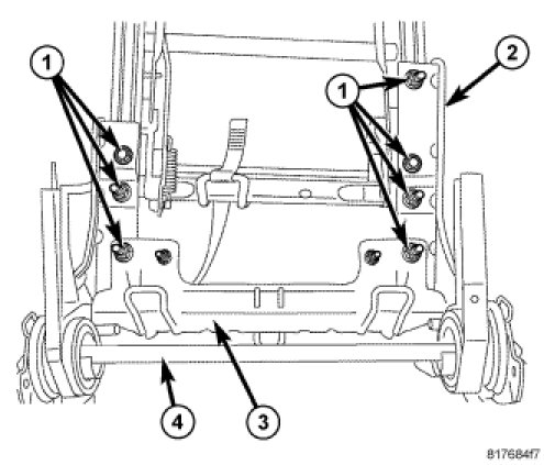 8. Install upper recliner bolts to seat back frame, and tighten bolts to 48 Nm (35 ft. lbs.) torque.