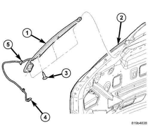 1. Route the pinch sensor wire harness through the hole in the liftgate. Push the wire harness grommet (5) into place until fully seated.