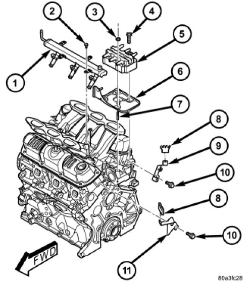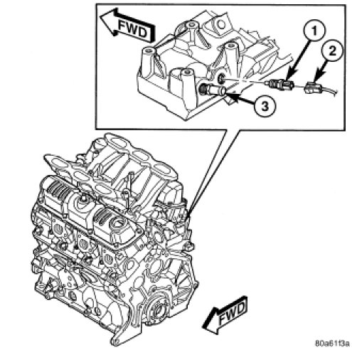 1. Install engine coolant temperature sensor Tighten sensor to 7 Nm (60 in. lbs.).