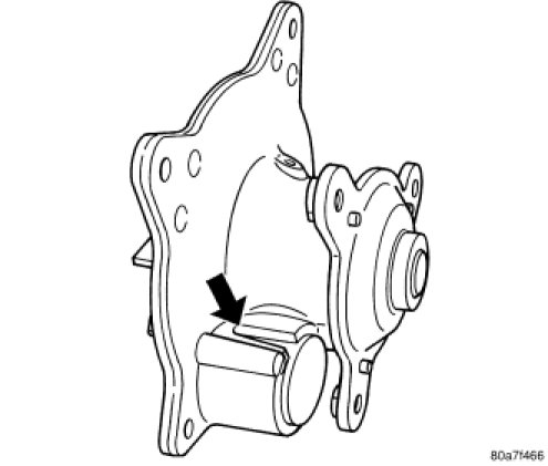 NOTE: A weepage stain that is black, brown, or grey is considered normal, if it is dry. If the weep appears wet; pressure test the cooling system at 103 - 124 kPa (15 - 18 psi) and observe the weep area. If weep area remains unchanged, do not replace the water pump for this condition. Replace the water pump, if a steady flow of engine coolant is evident from the weep hole/reservoir slot (shaft seal failure). Be sure to perform a thorough analysis before replacing water pump.
