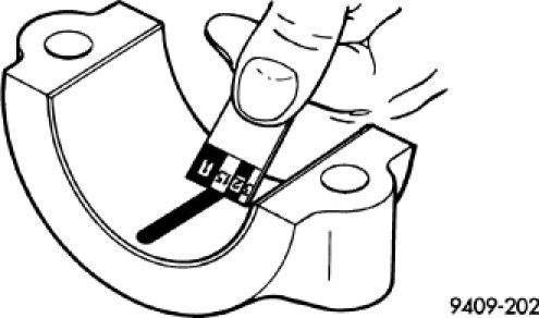 10. Carefully remove the bearing cap and measure the width of the Plastigage at the widest part using the scale on the Plastigage package. Refer to Engine Specifications for proper clearances Engine Specifications. If the clearance exceeds the specified limits, replace the main bearing(s) with the appropriate size, and if necessary, have the crankshaft machined to next undersize.