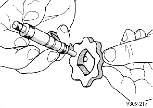 6. Install inner rotor into chain case cover. If clearance between inner and outer rotors is 0.203 mm (0.008 in.) or more, replace both rotors.