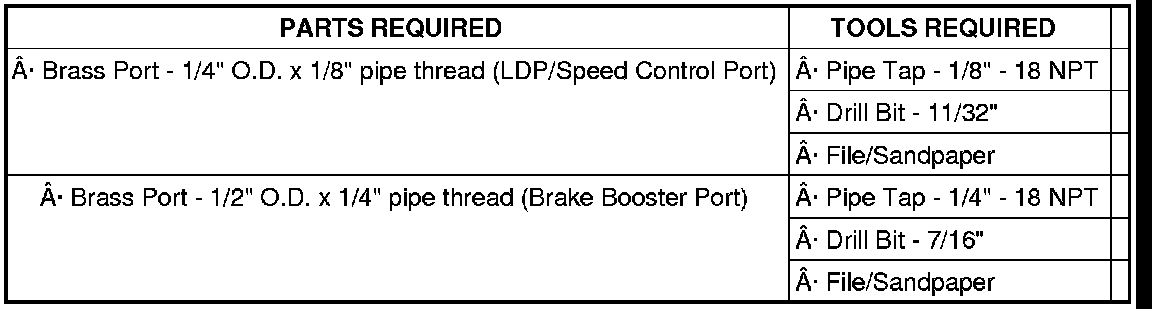 3. Using a 1/4"-18 NPT (brake booster port) or 1/8"-18 NPT (LDP/speed control port ) pipe tap, cut internal threads. Use caution to start tap in a axis same as original port.